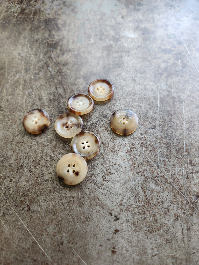 Horn Buttons / 20mm / Billiards Room Merchant & Mills $3.95 Light - $3.95 Dark - $3.95 Quantity This variant is currently sold out Please fill in the form below if you'd like to be notified when it becomes available. 20mm horn button. Golden or dark brown tortoiseshell. Made in Italy. Washing machine safe. Price per button.