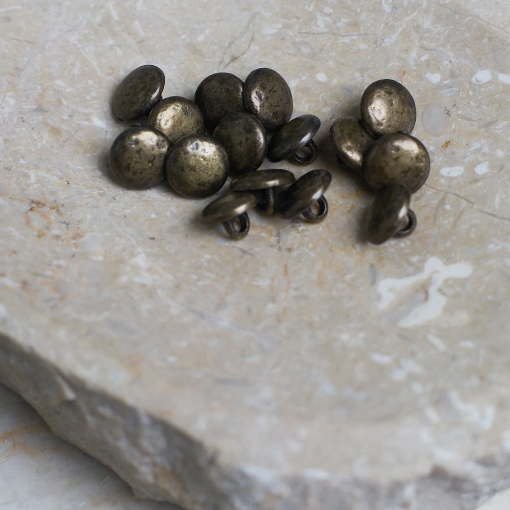 Moon Buttons / 10mm / Set of 6 / Antique Brass Atelier Brunette $6.95 Default Title - $6.95 Quantity This product is currently sold out. Please fill in the form below if you'd like to be notified when it becomes available. Sold per set of 6 Size : 10 mm Color: Antique Brass Made in France Oeko-Tex Standard 100 certified Machine wash on gentle cycle